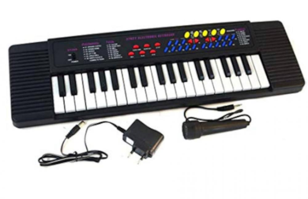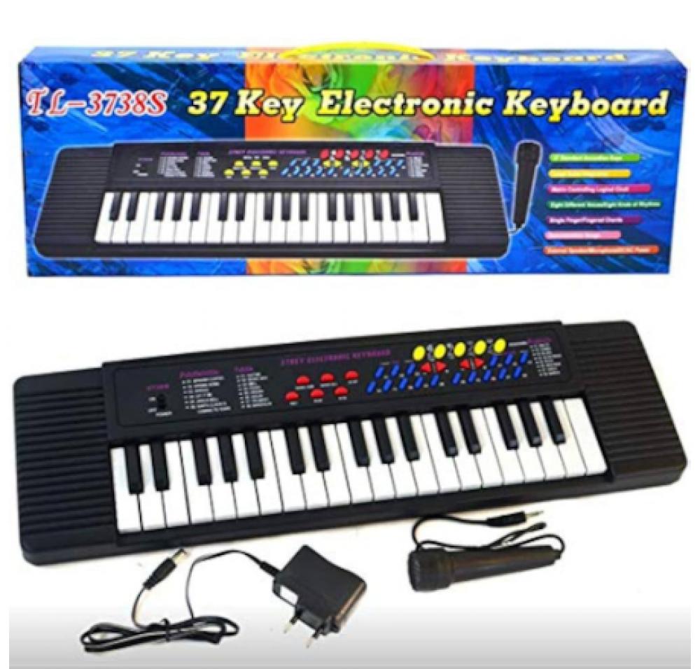 · بيانو بطول 75 سم يحتوي على مايك ويصدر 37 صوت مختلفين. يعمل على البطاريات او الكهرباء.