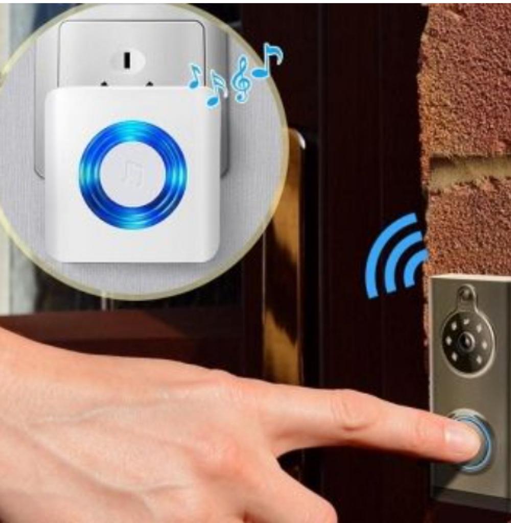جرس باب لاسلكي مزدوج مقاوم للماء مع نطاق 400 متر، 38 نغمة، 4 مستويات صوت وضوء ازرق